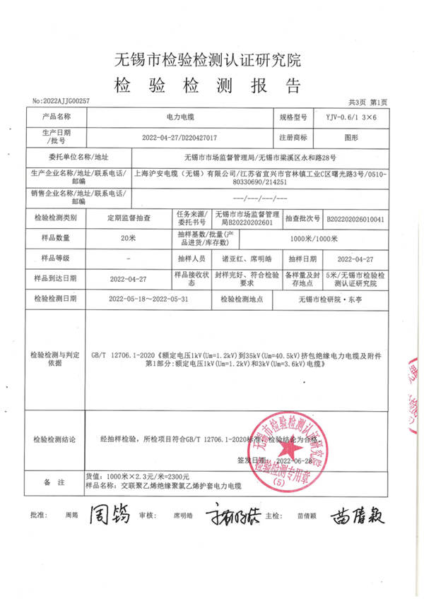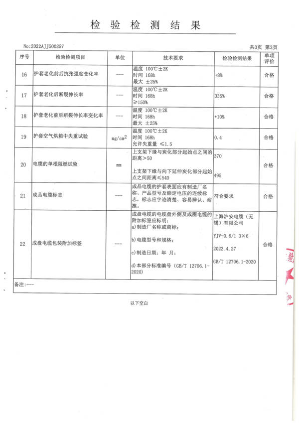 上海沪安电缆(无锡)有限公司/ 检验检测报告